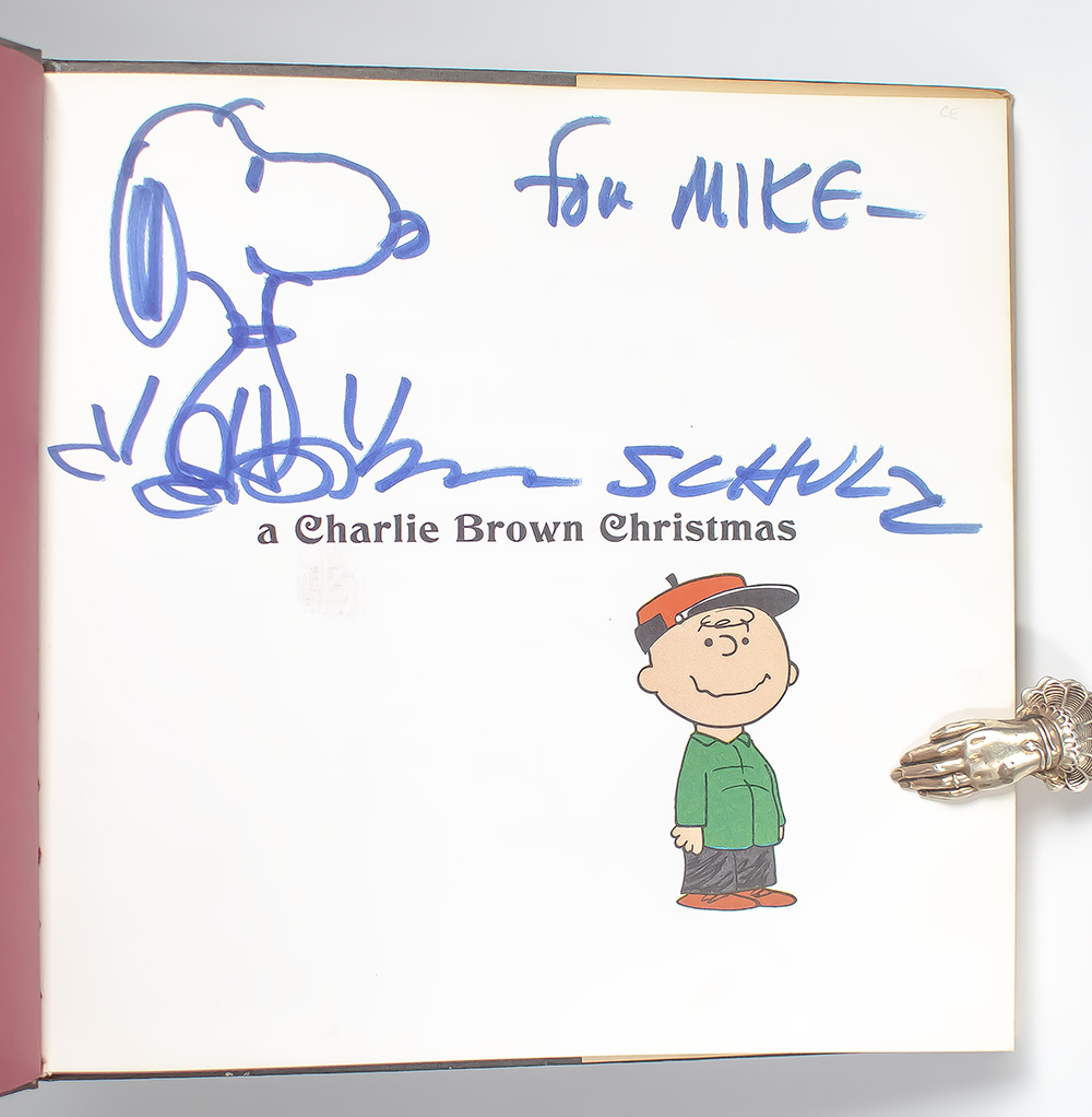 "It's not what's around the Christmas tree that matters it's who's around it": First Edition of A Charlie Brown Christmas; Signed by Charles Schulz with an original drawing