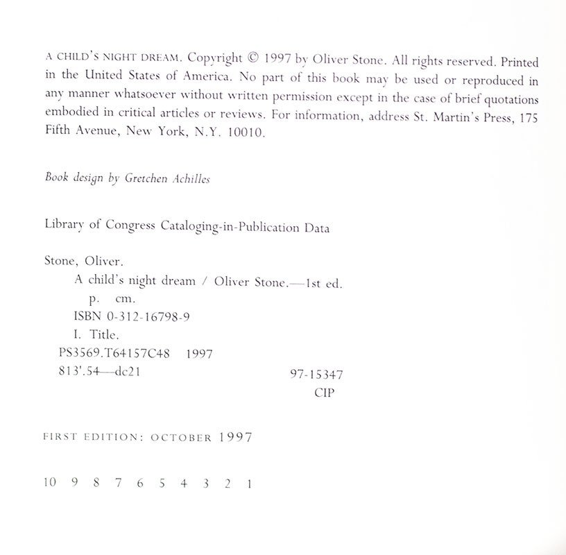First Edition of Oliver Stone's A Child's Night Dream; signed by him