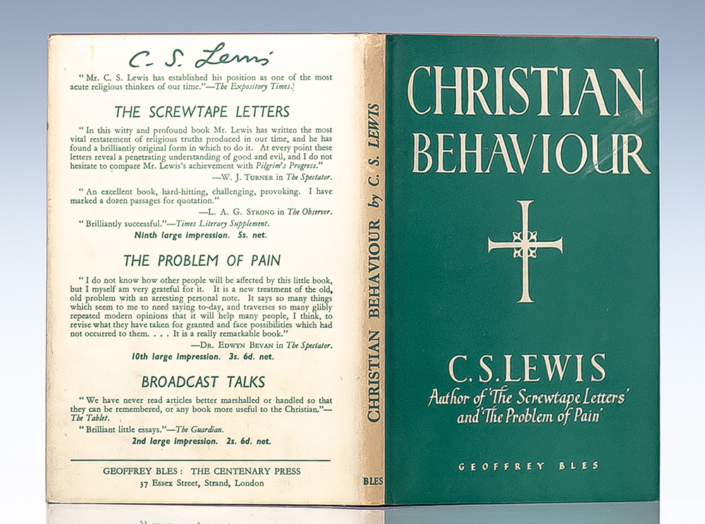 First Edition of C.S. Lewis' A Christian Behaviour: A Further Series of Broadcast Talks