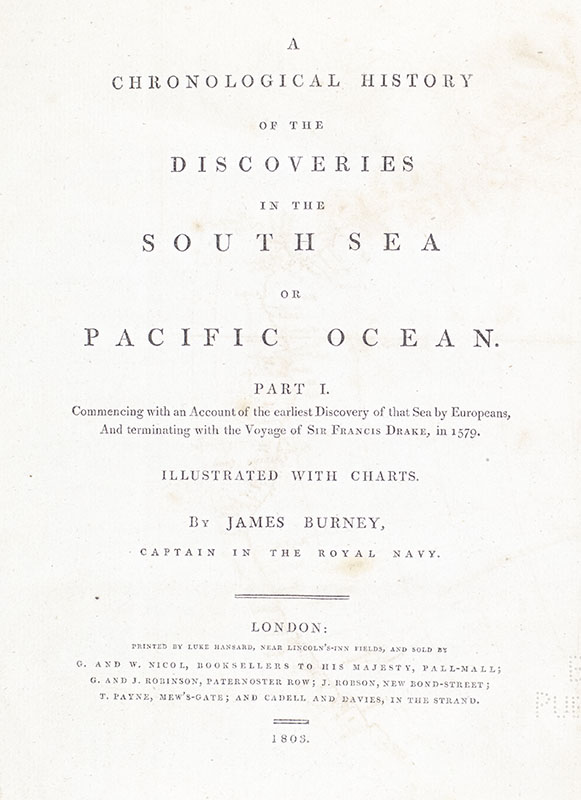 First Edition of Burney's Chronological History of the Discoveries in the South Sea or Pacific Ocean