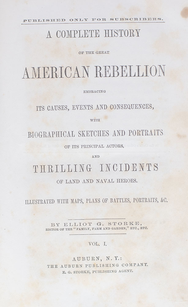First Edition of Elliot G. Stokes' A Complete History of the Great American Rebellion