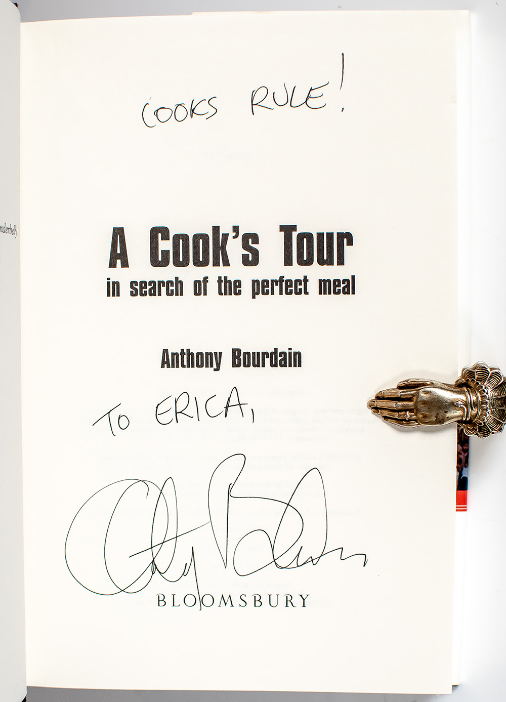 “Skills can be taught. Character you either have or you don't have": First Edition of A Cook's Tour: In Search of the Perfect Meal; Inscribed by Anthony Bourdain