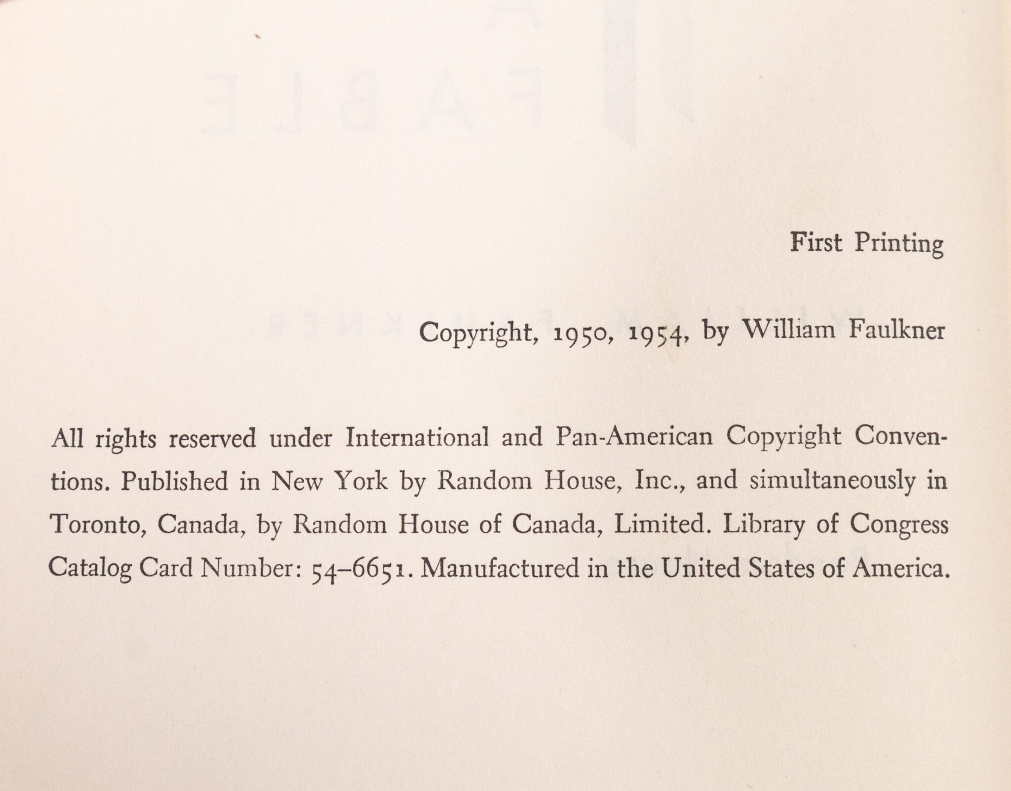 “War is an episode, a crisis, a fever the purpose of which is to rid the body of fever. So the purpose of a war is to end the war": First Edition of William Faulkner's A Fable
