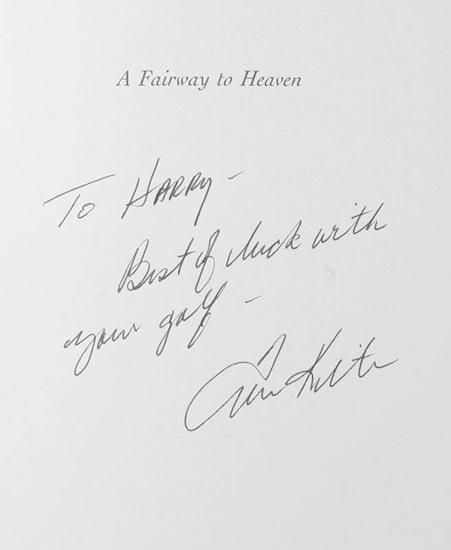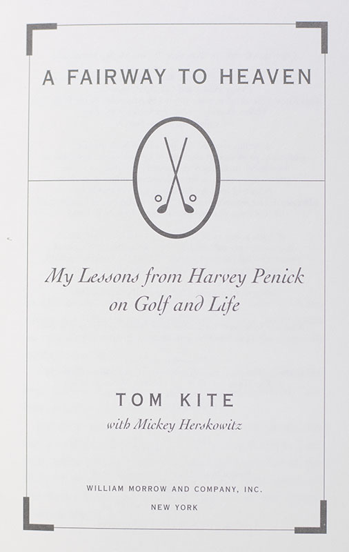 "Take dead aim for the pin": First Edition of Tom Kite's A Fairway to Heaven: My Lessons From Harvey Penick On Golf And Life; Inscribed by Him
