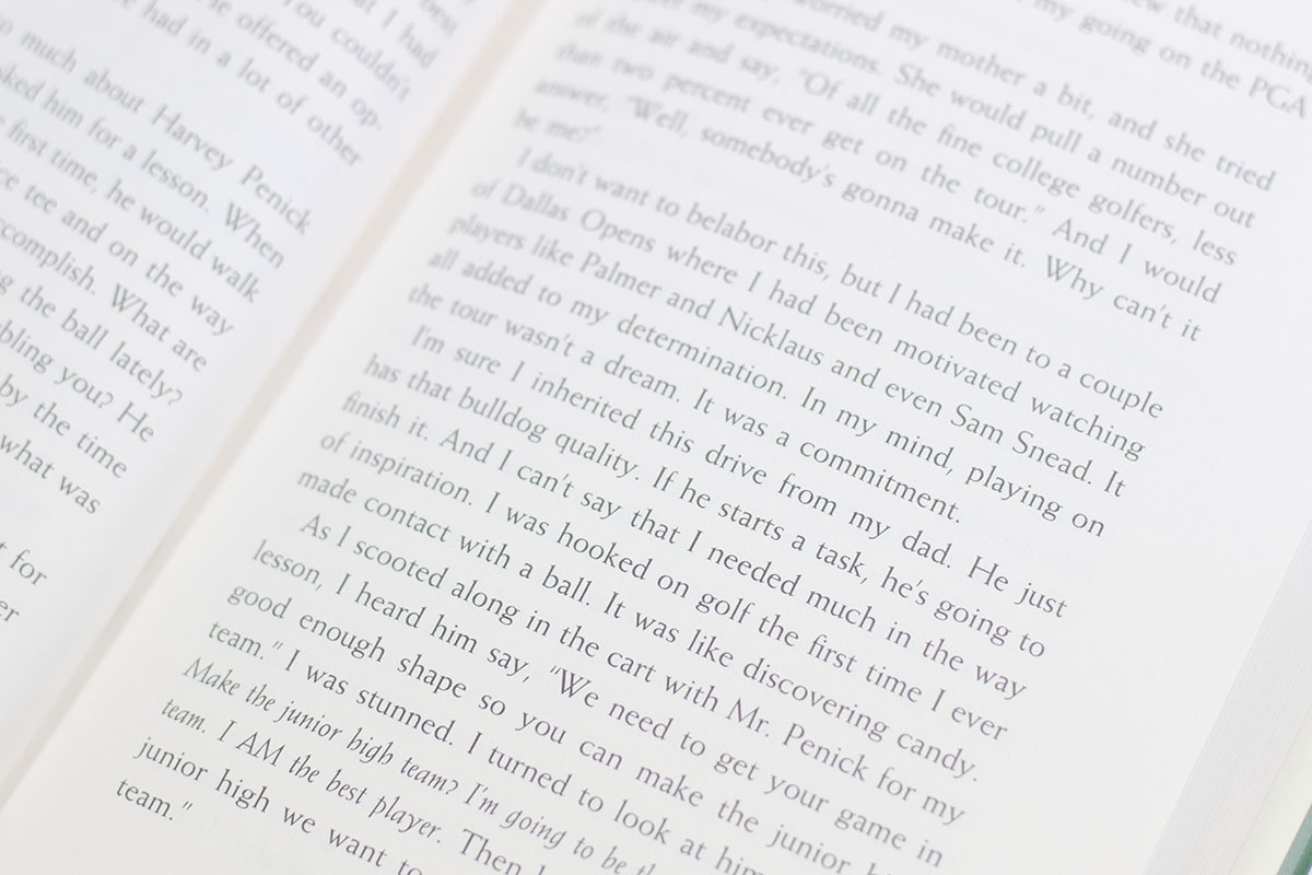 First edition of this work by the legendary golfer. Octavo, original half cloth. Presentation copy, inscribed by the author on the half-title page, "To Harry- Best of luck with your golf Tom Kite." Fine in a fine dust jacket. Jacket design by Bradford Foltz. Written with Mickey Herskowitz.
