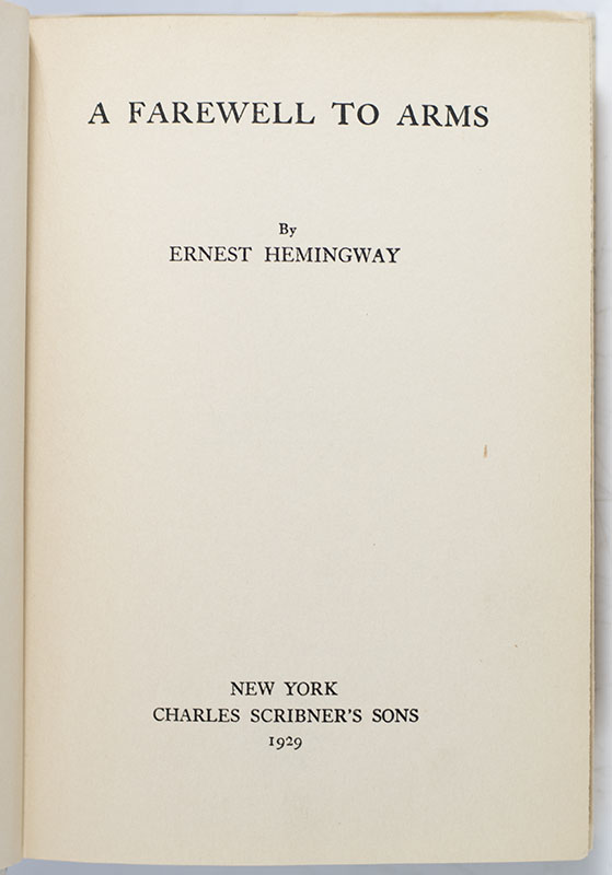 "Im not brave any more darling. Im all broken. Theyve broken me": First Edition of Ernest Hemingways Classic Novel A Farewell To Arms; Inscribed by Him to Fellow Writer Michael Murphy
