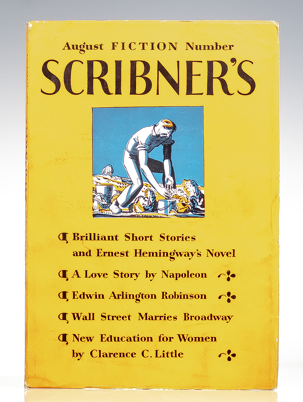 First appearance of the Hemingway's classic novel, serialized in Scribner's Magazine. Scribner's, May-October, 1929. Vol. LXXXV, No. 5-6, Vol. LXXXVI, No. 1-4. Contains the first appearance of the novel published on September 27, 1929. Quarto, original publisher's orange pictorial paper wrappers, each with a design by Rockwell Kent. First and last issues with photographic frontispieces of Hemingway. In very good condition. Housed in a custom clamshell box. A nice example.