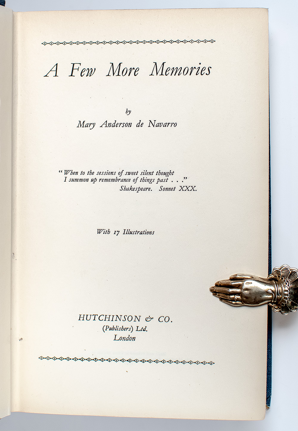 First Edition of Mary Anderson de Navarro's A Few More Memories; Inscribed To Philemon Tecumseh Sherman