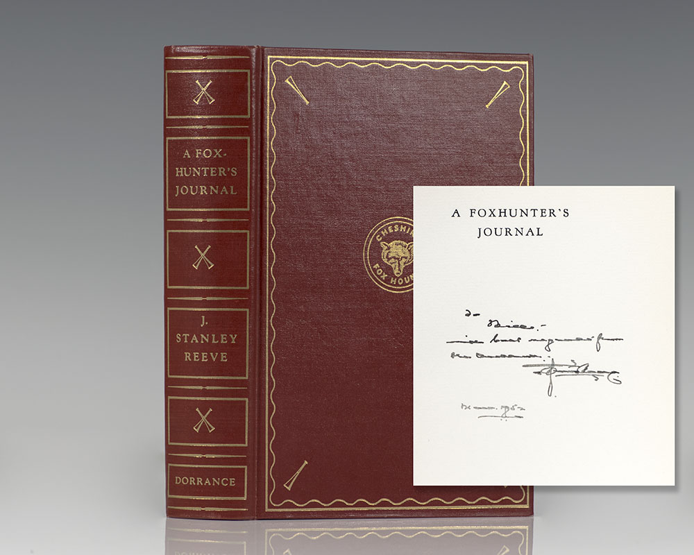 Signed limited edition of Reeve's authoritative work on fox hunting. Octavo, original red cloth with gilt titles and tooling to the spine, Cheshire Fox Hunters emblem to the front panel, colored engraved frontispiece with tissue guard, illustrated with engravings. One of only 500 copies signed by the author, this is number 33. Additionally inscribed by the author on the half-title page, "To Miriam with best regards from the author J. Stanley Reeve." In near fine condition. A sharp example.