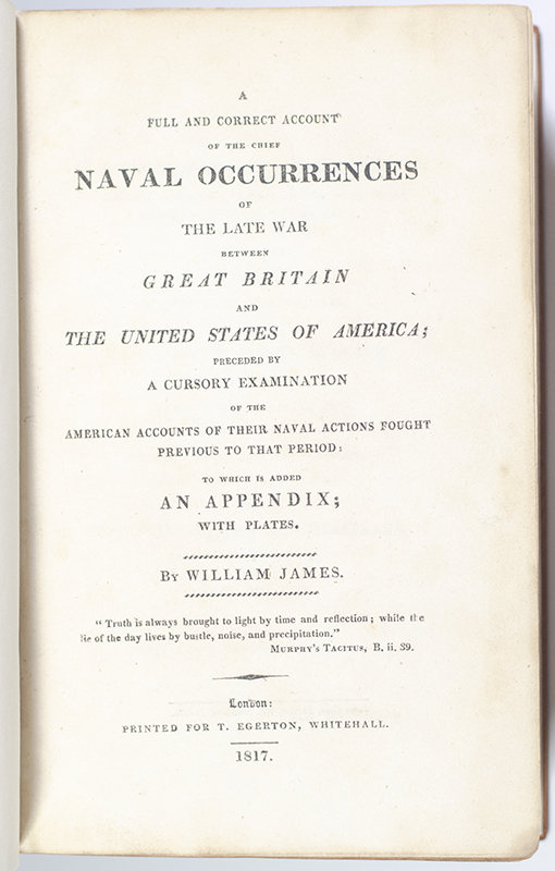 "The inspiration for Theodore Roosevelt's The Naval War of 1812": First edition of William James' A Full and Correct Account of the Chief Naval Occurrences of the Late War Between Great Britain and The United States of America