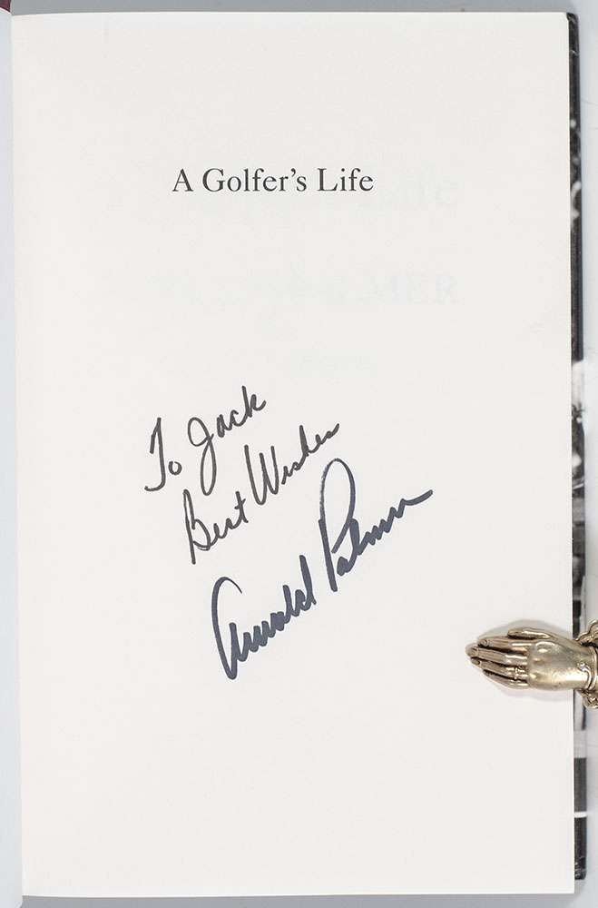First edition of the golfing legend's autobiography. Octavo, original half cloth, with 16 black-and-white photographic plates. Presentation copy, inscribed by the author on the half-title page, "To Jack Best Wishes Arnold Palmer." Fine in a fine dust jacket. Written with James Dodson.
