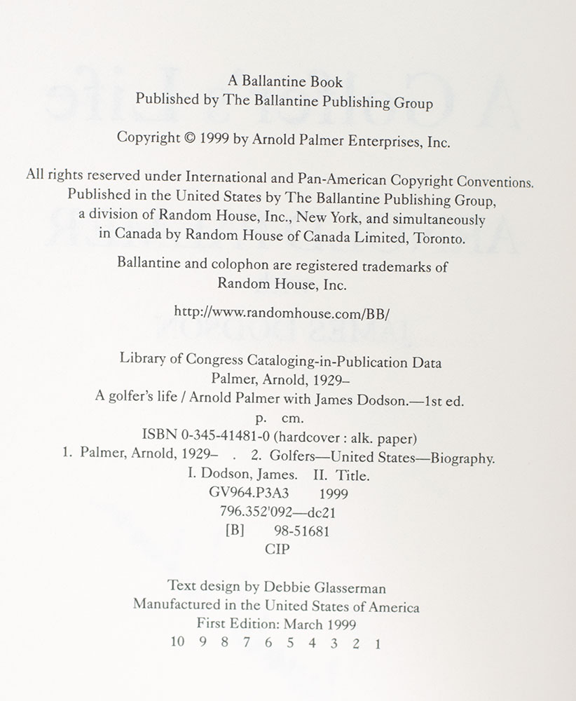 First Edition of A Golfer’s Life; Signed by Arnold Palmer