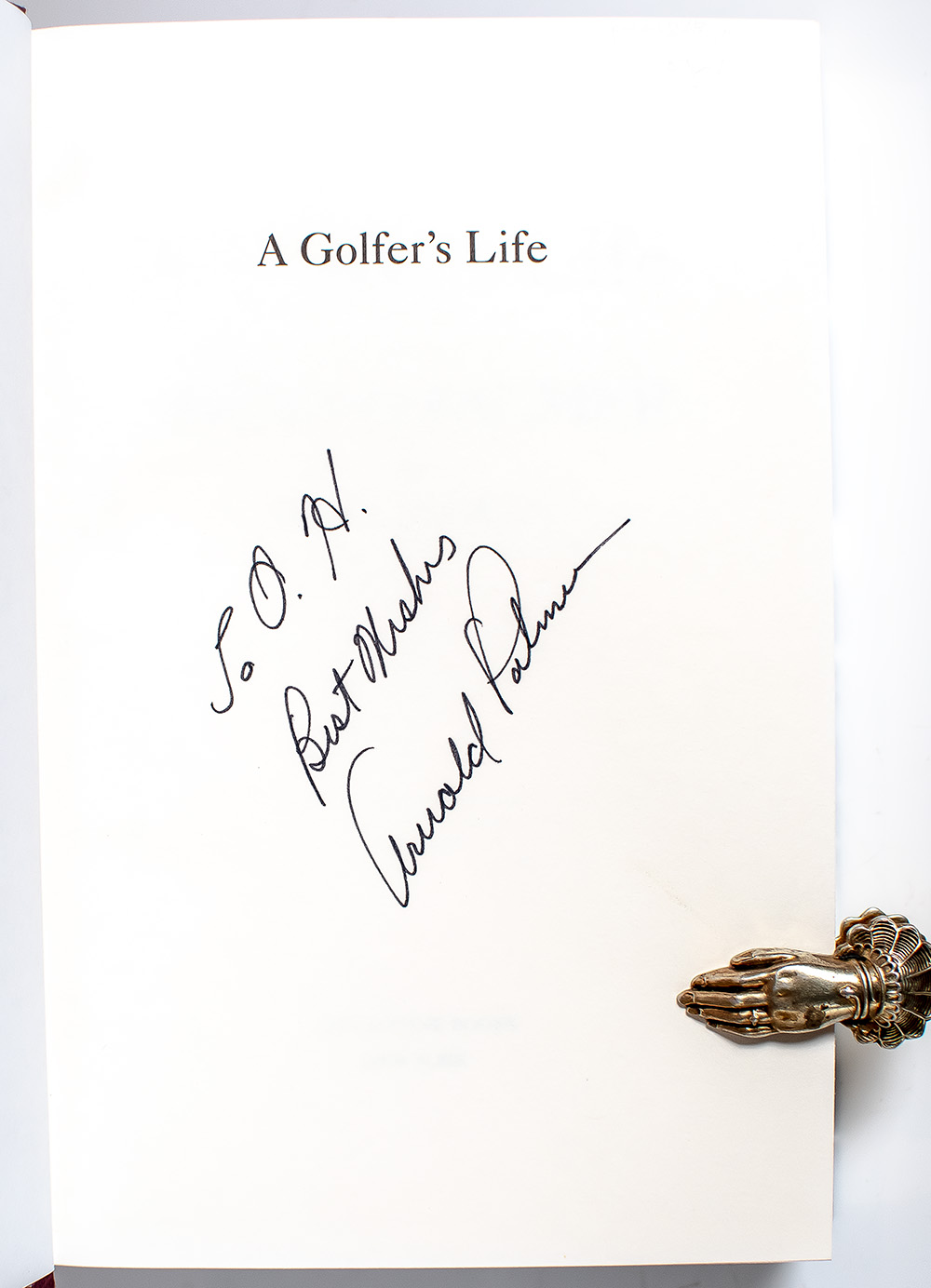First edition of the golfing legend's autobiography. Octavo, original half cloth, with 16 black-and-white photographic plates. Presentation copy, inscribed by the author on the half-title page, "To O.H. Best Wishes Arnold Palmer." Fine in a fine dust jacket. Written with James Dodson.
