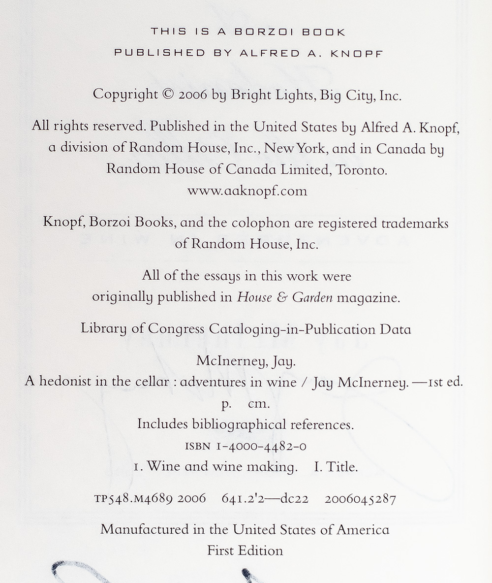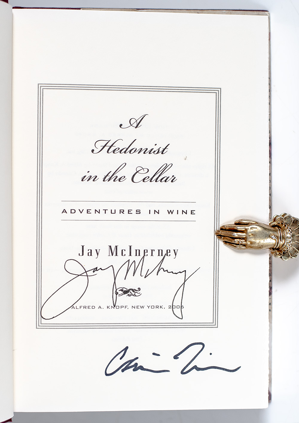 First Edition of Jay McInerney's A Hedonist in the Cellar; Signed by Jay McInerney and three times by Legendary Jacket designer Chip Kidd