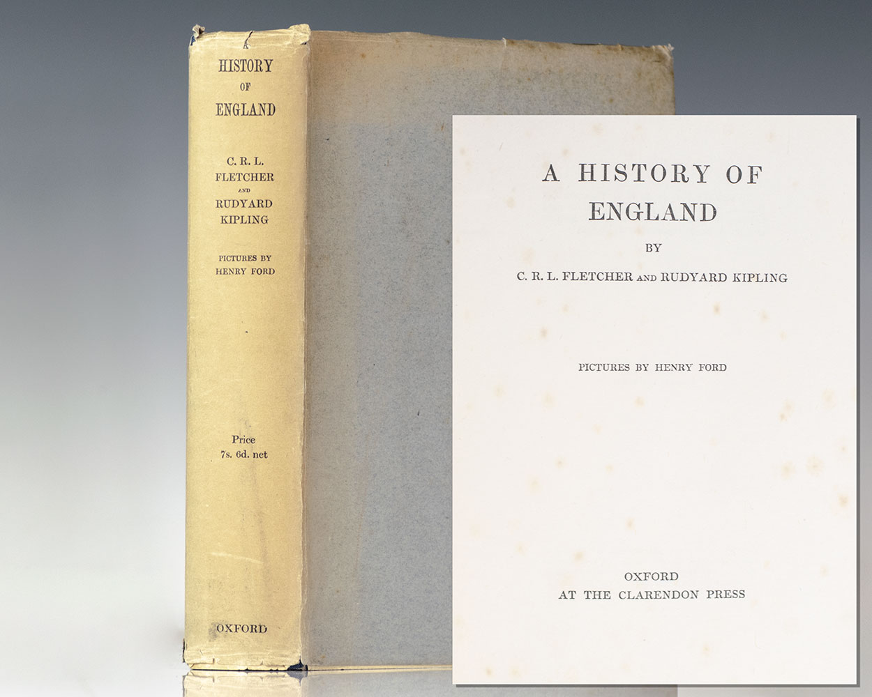 Corrected edition of Kipling and Fletcher's history of Great Britain for boys and girls. Quarto, original cloth, illustrated with colored plates and maps by Henry Ford. Very good in the original dust jacket which is in good condition.