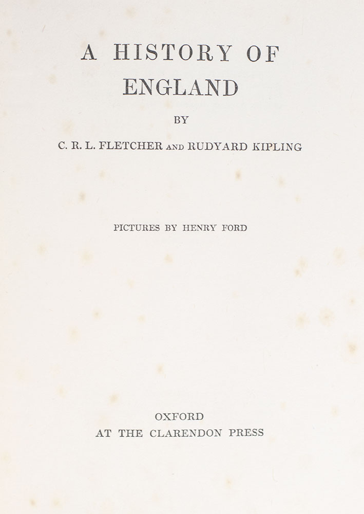 Kipling and Fletcher's A History of England covers the history of Great Britain and the British Empire from the departure of the Romans, through Saxon England and the Middle Ages, the eras of the Tudors and Stuarts, the American Rebellion and Great French War, up until the Kingdom and Dominion of the Georges. Fletcher contributed most of the historical text with Kipling's assistance and contribution of 23 poems. Illustrator Henry Ford was best known for his work in Andrew Lang's colored Fairy books.