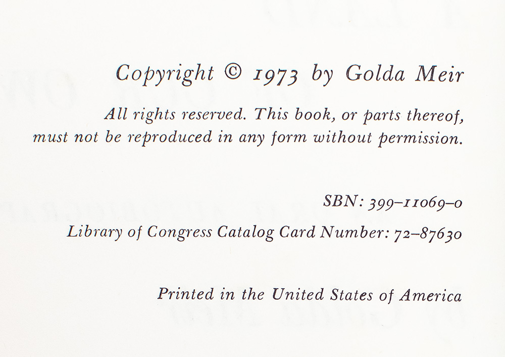 First Edition of Golda Meir's A Land of Our Own: An Oral Autobiography
