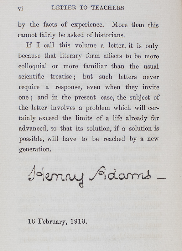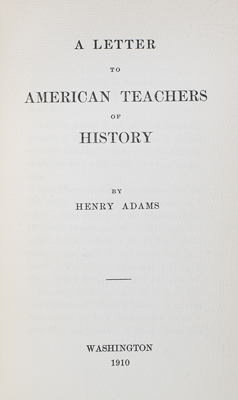 First edition of Henry Adams' A Letter to American Teachers of History; signed by him