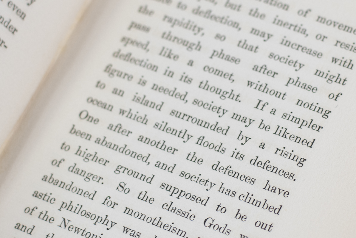 "In 1910 Adams published and scattered widely a little volume which he called A Letter to American Teachers of History. Its style was designedly colloquial and its tone provocative. Assuming the validity of the second law of thermodynamics, that there is a universal tendency to the dissipation of mechanical energy, he pointed out the dilemma of teachers of history if they postulated a progressive evolution in human history towards some state of perfection, or tried to exempt mind from the operation of the law. What did they propose to do about it? Human thought should be considered as a substance passing from one phase to another, through a series of critical points which are determined by attraction, acceleration, and volume. - the equivalents of pressure, temperature, and volume in mechanical physics. In short, the future historian who would interpret the movement called history would have to seek his education in the world of mathematical physics" (DAB)