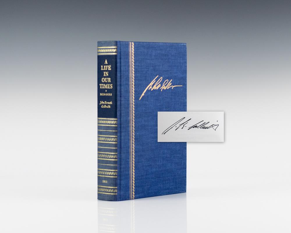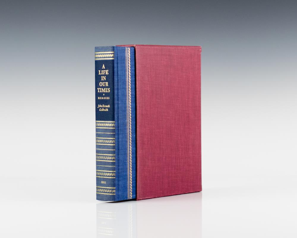 Signed limited edition of John Kenneth Galbraith's memoirs. One of 350 copies signed by Galbraith, this copy is number 94. Octavo, original blue cloth with titles to the spine in gilt, top edge gilt. Both the book and slipcase are in fine condition without wear.