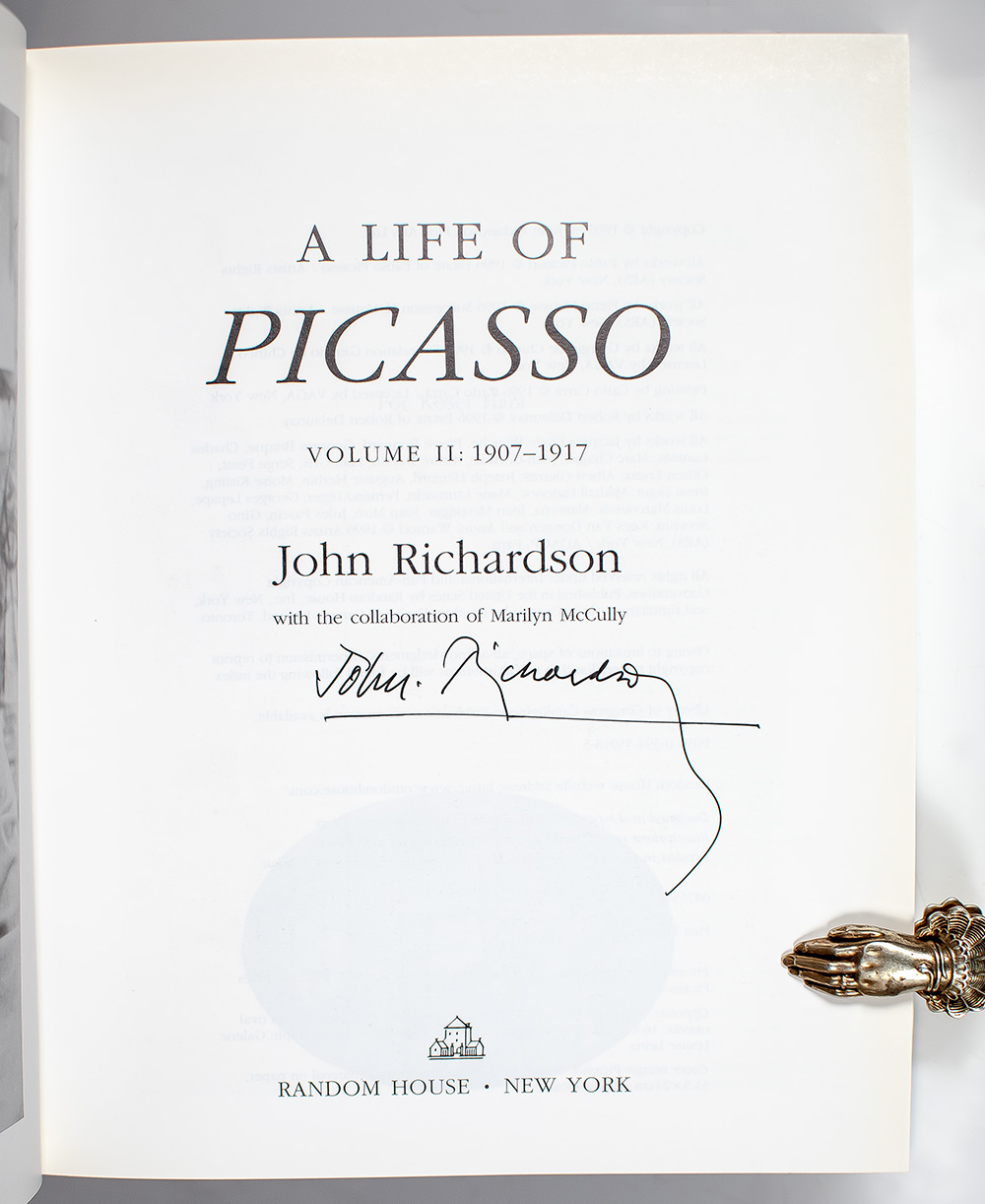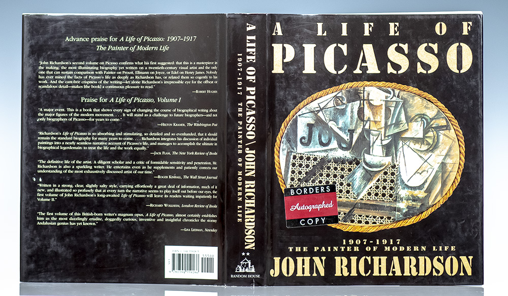 First edition of the second volume in Richardson's four-volume biography of the famous artist. Small quarto, original publisher's white embossed cloth, frontispiece of a self-portrait photograph by Picasso 1912, illustrated throughout with black-and-white photographs. Boldly signed by John Richardson on the title page. Fine in a very good dust jacket.