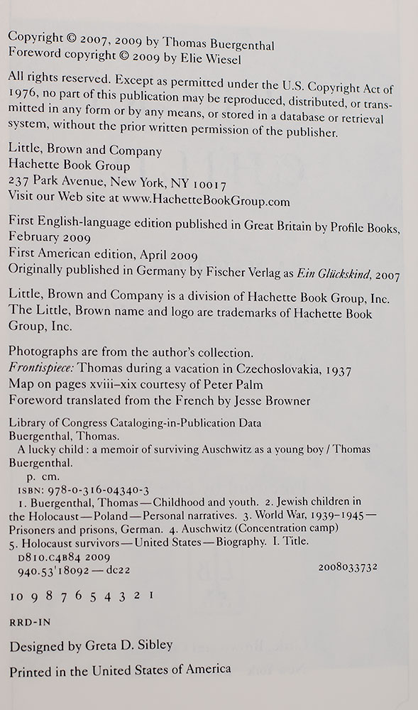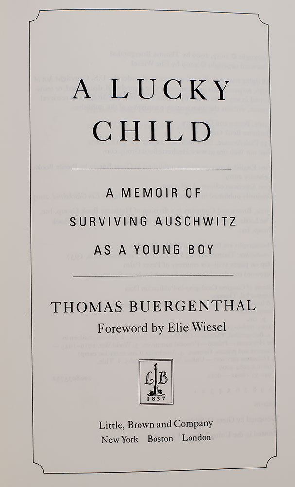 First Edition of Thomas Buergenthal's A Lucky Child: A Memoir of Surviving Auschwitz as a Young Boy; Inscribed by Him
