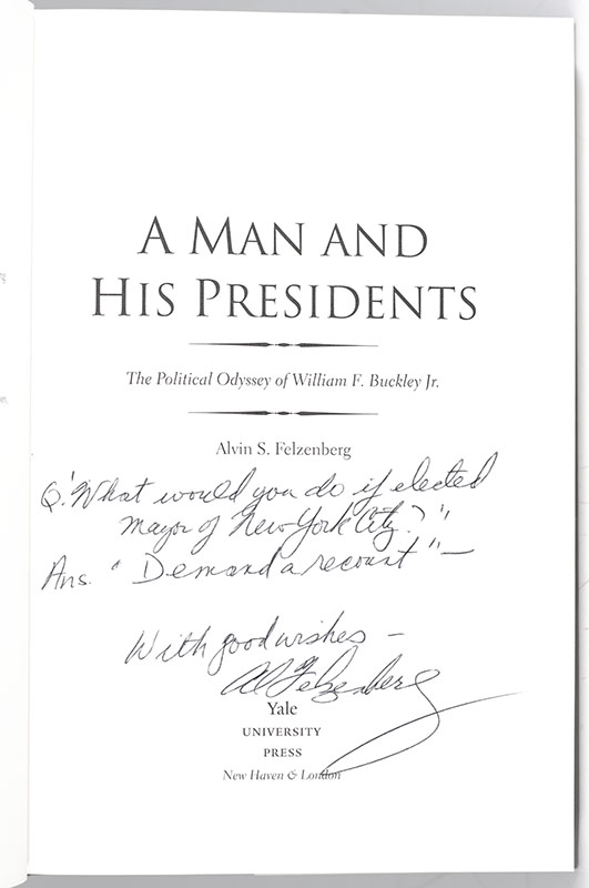First Edition of A Man and His Presidents: The Political Odyssey of William F. Buckley Jr.; Signed by Alvin Felzenberg