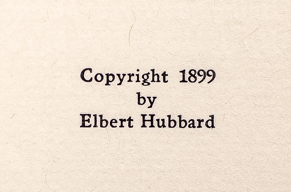 Rare early printing of Hubbard's best-selling work on individual initiative and conscientiousness in work. 16mo, original publisher's full limp suede, titles to the front panel stamped in gilt, watered moiré silk endleaves. Signed by the author on a tipped in photographic frontispiece portrait, "Elbert Hubbard." In good condition.