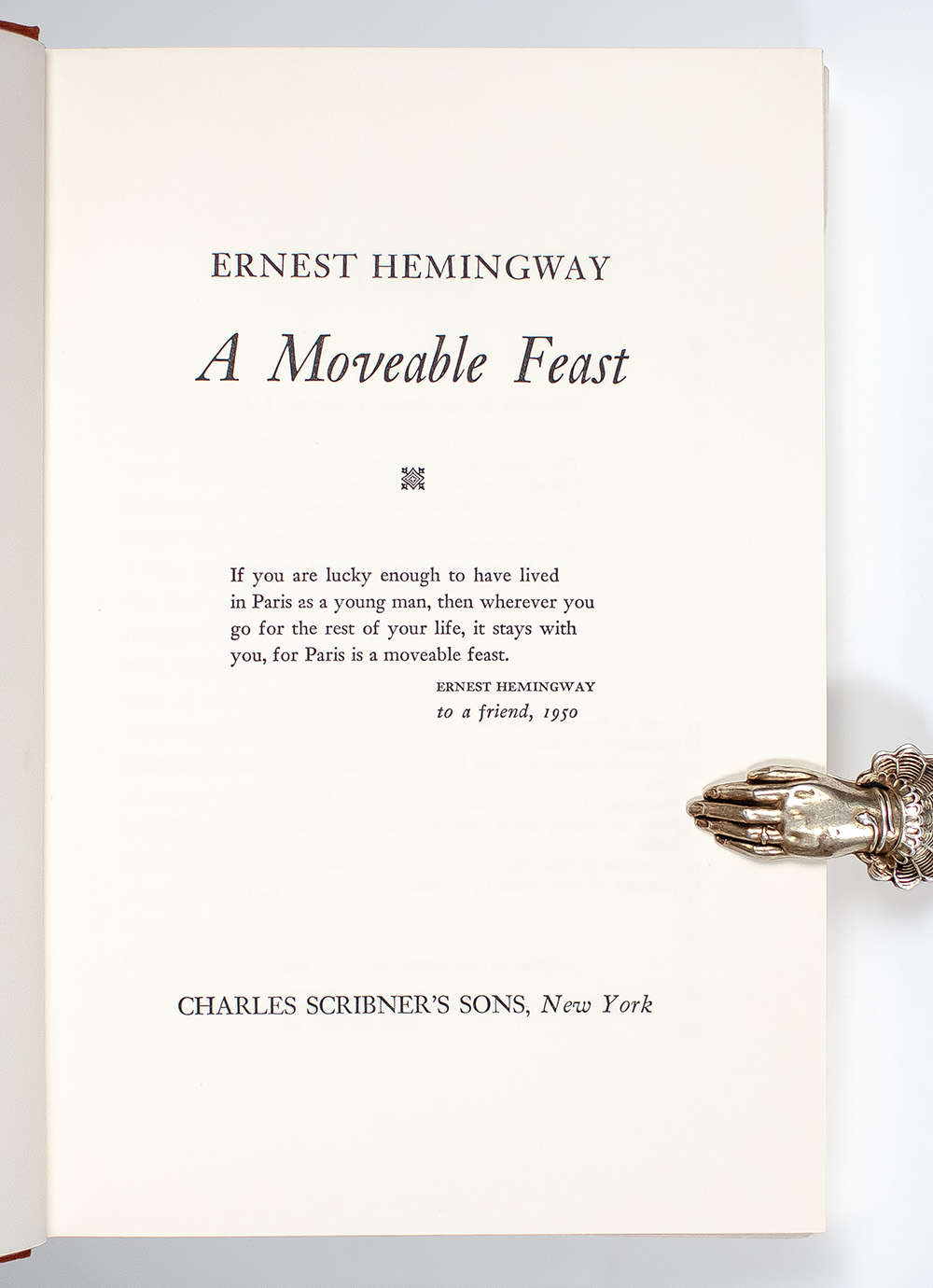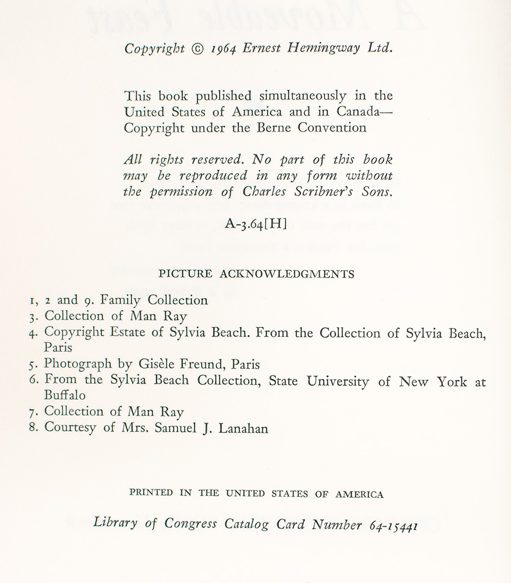 "This is how Paris was in the early days when we were very poor and very happy": First Edition of Ernest Hemingway's A Moveable Feast