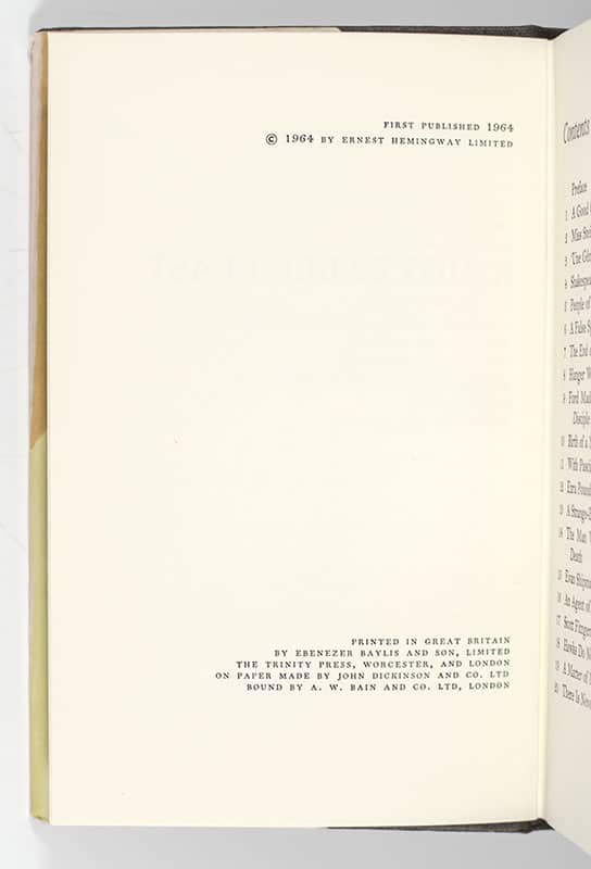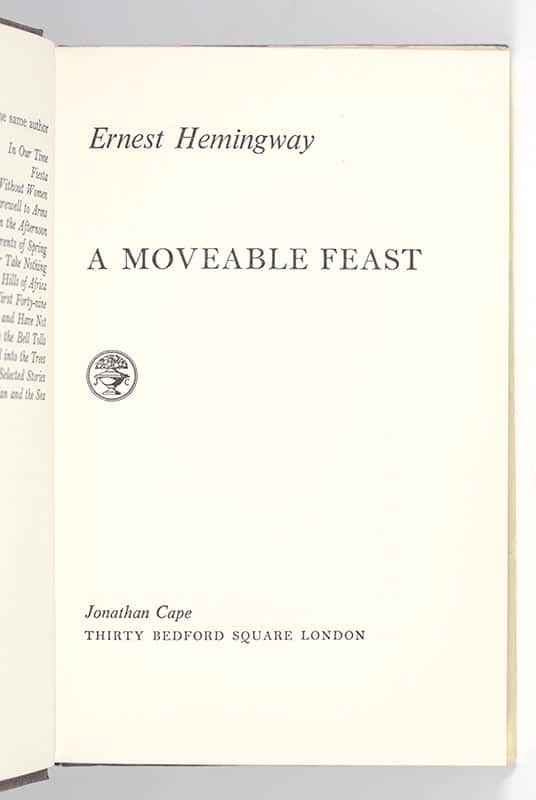 "This is how Paris was in the early days when we were very poor and very happy": First Edition of Ernest Hemingway's A Moveable Feast