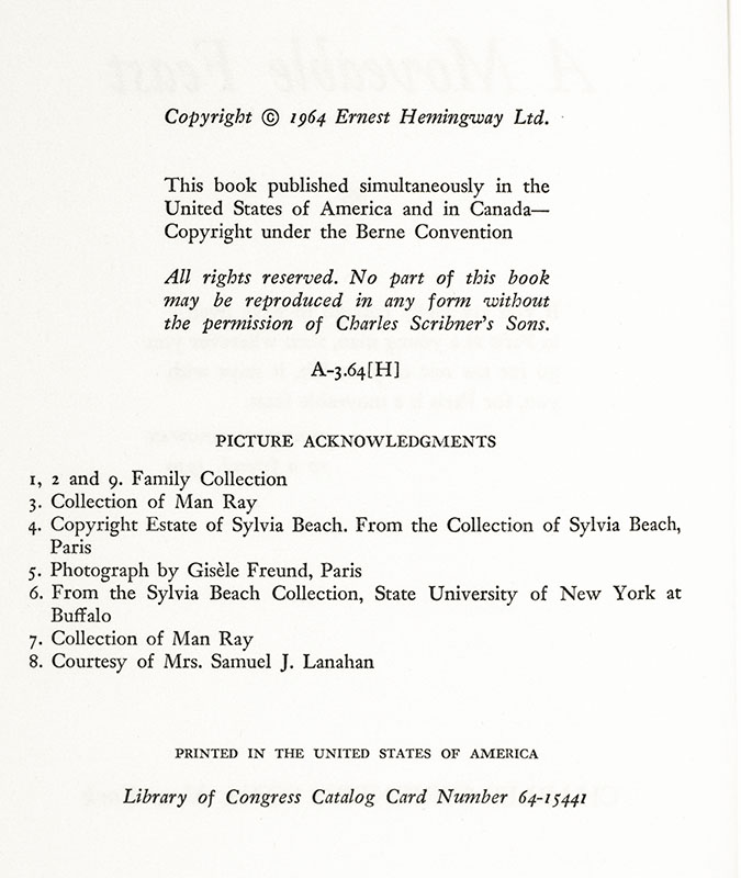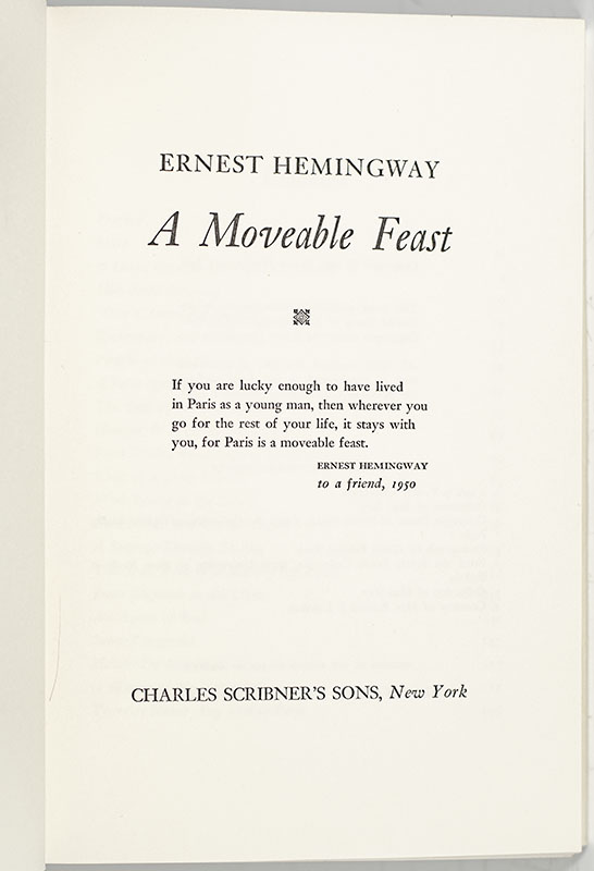"This is how Paris was in the early days when we were very poor and very happy": First Edition of Ernest Hemingway's A Moveable Feast