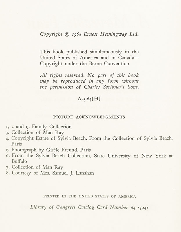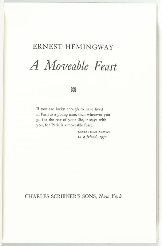 "This is how Paris was in the early days when we were very poor and very happy": First Edition of Ernest Hemingway's A Moveable Feast