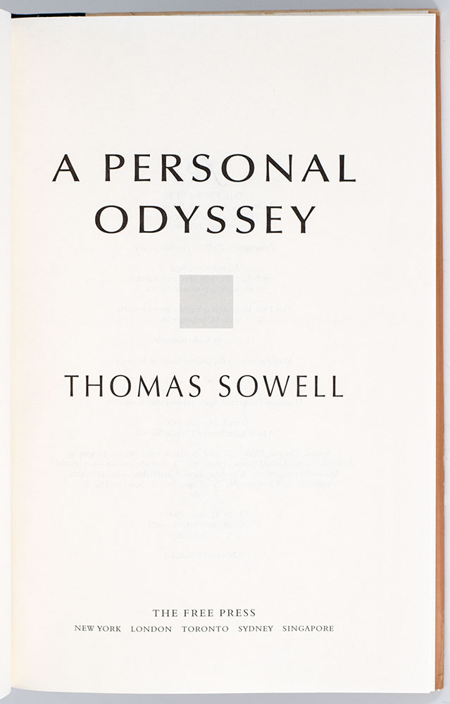 First Edition of Thomas Sowell's Personal Odyssey; Signed by Him