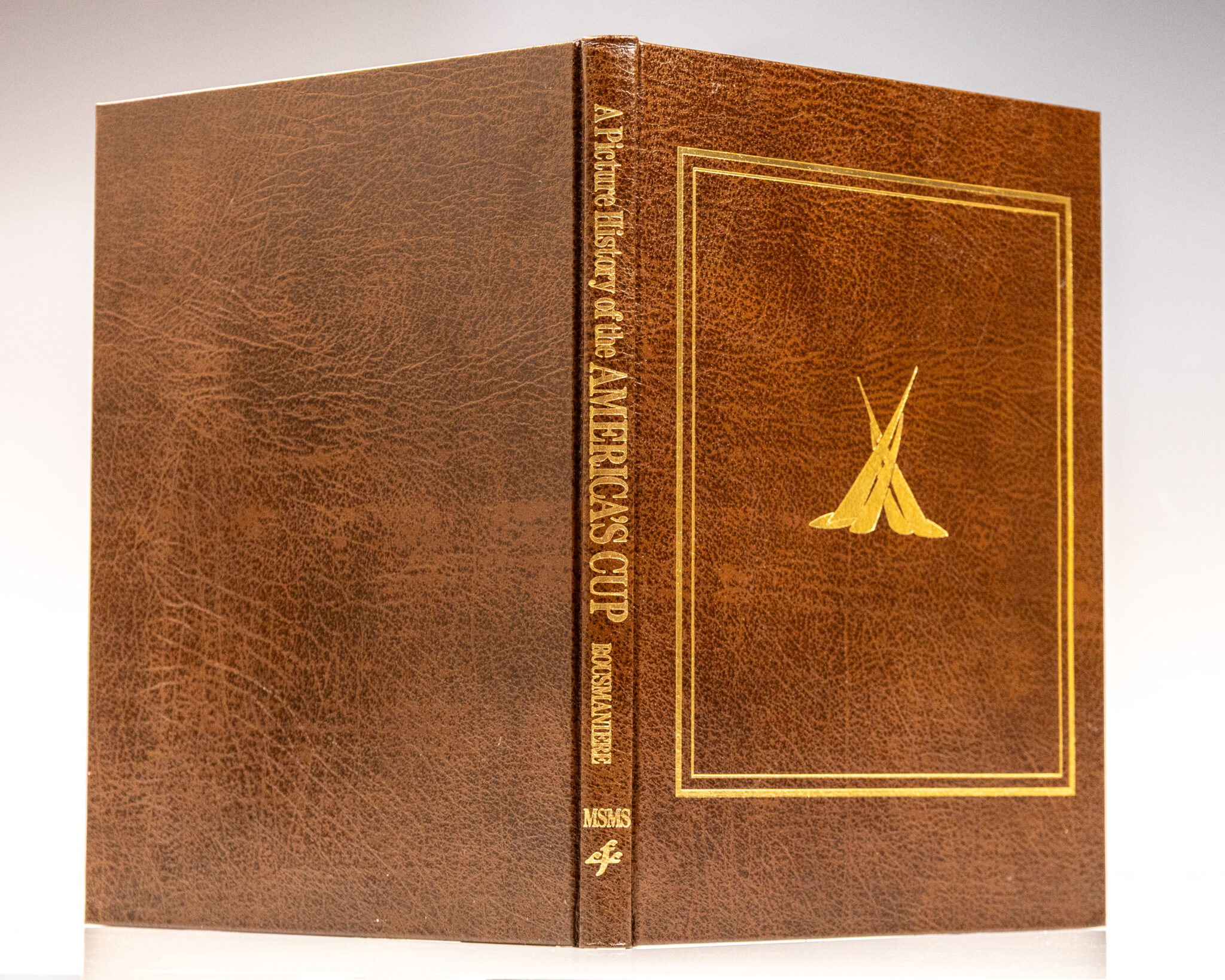 First limited edition of this history of the America's Cup yacht racing competition from 1851 through 1988. Quarto, bound in full brown leather with gilt titles to the spine, double gilt ruling to the front panel, title page vignette photograph of the Cup, illustrated profusely with photographs of the America's Cup taken by the Rosenfeld family. One of 975 numbered copies. Boldly signed by John Rousmaniere in blue ink on the limitations page. In fine condition. Housed in the original custom cloth slipcase.