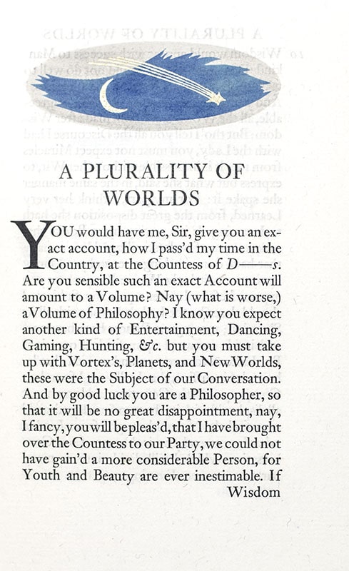 First Nonesuch Press edition of de Fontenelle's A Plurality of Worlds