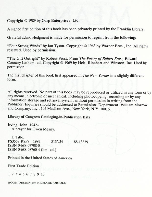 "I am a Christian Because of Owen Meany": First Edition of A Prayer For Owen Meany; Lengthily Signed by John Irving