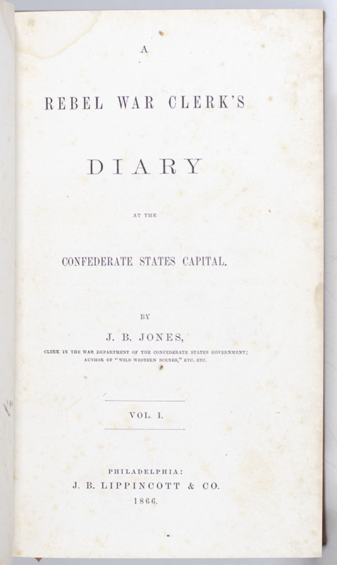 “The most consulted journal for wartime Richmond and the Confederate government": First edition of J. B. Jones' A Rebel War Clerk's Diary at the Confederate States Capital