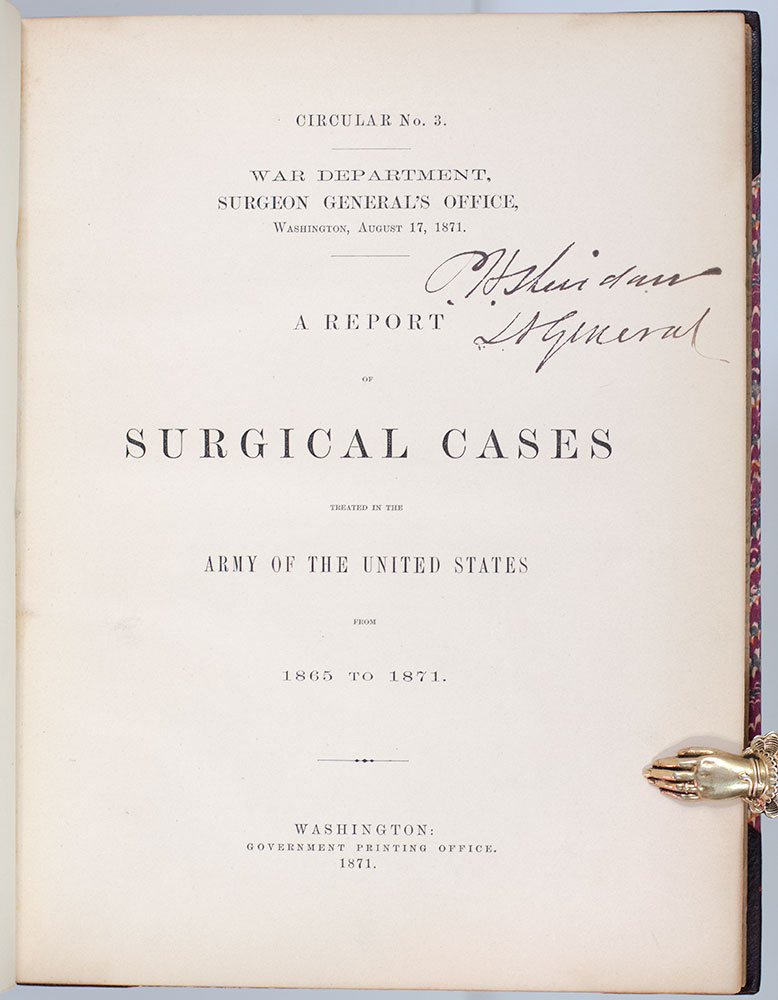 Rare first edition of A Report of Surgical Cases Treated in the Army of the United States From 1865 to 1871; From the library of Union Army General Philip Sheridan with his ownership signature