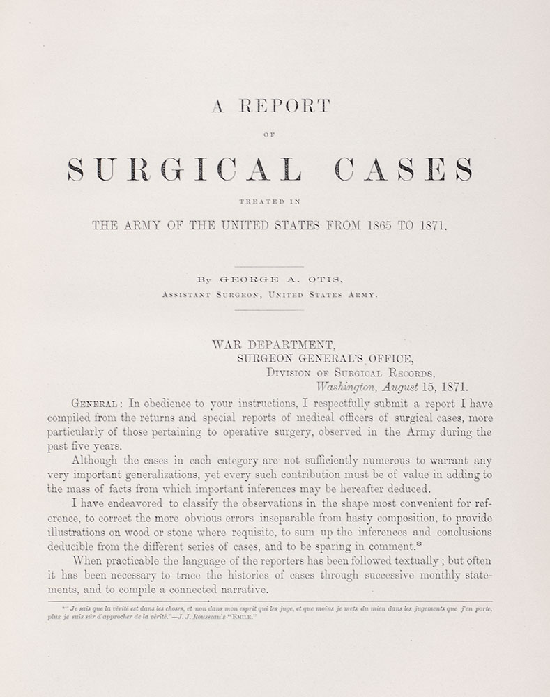 A Report of Surgical Cases Treated in the Army of the United States From 1865 to 1871. Circular No. 3. War Department. Surgeon General's Office, Washington, August 17. 1871.