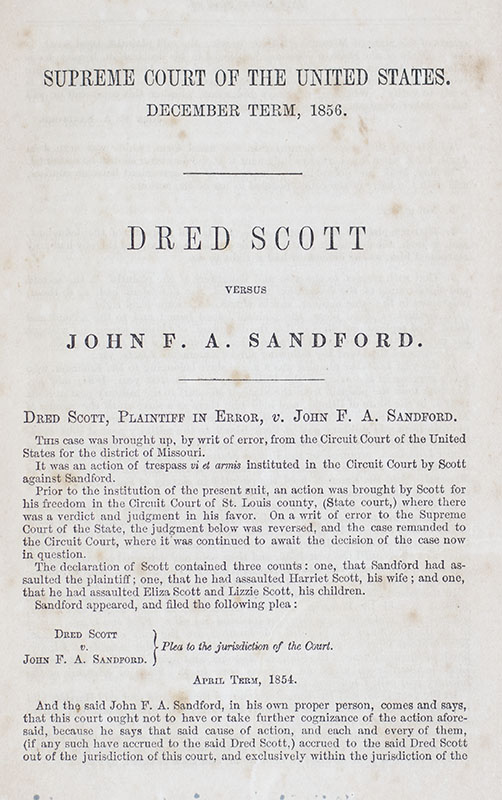First edition of A Report of the Decision of the Supreme Court of the United States in the Case of Dred Scott versus John H. Sanford