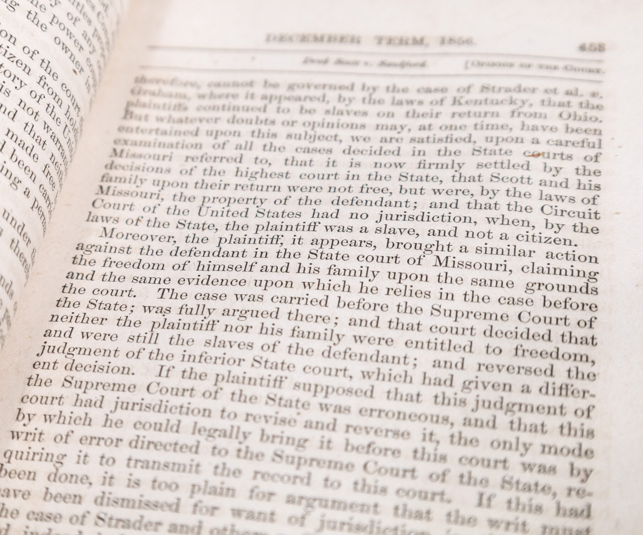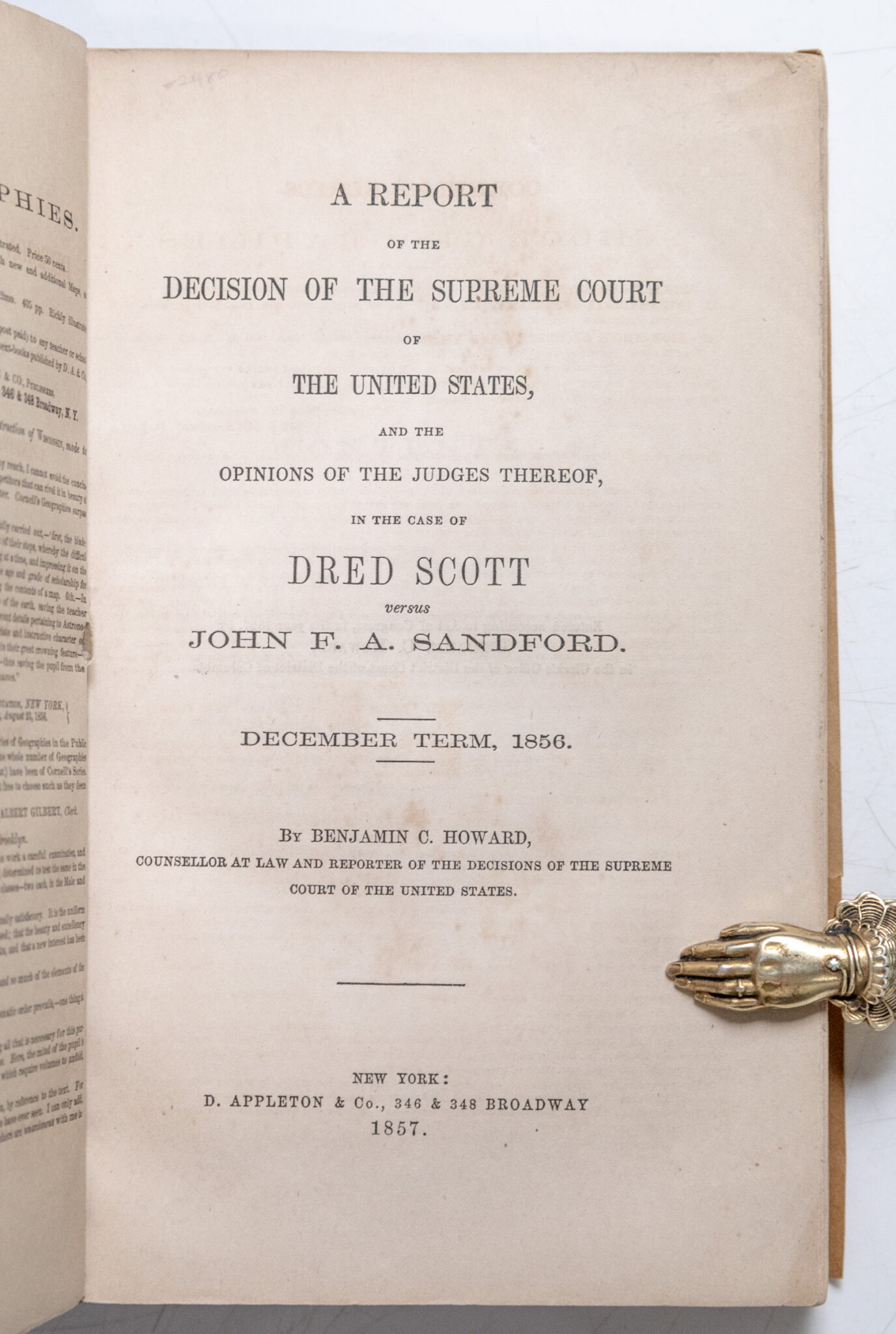Rare First Edition of A Report of the Decision of the Supreme Court of the United States in the Case of Dred Scott versus John H. Sanford