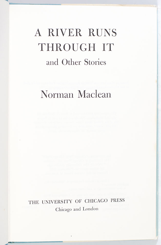 First edition, first printing one of only 1,577 copies of Maclean's first book. Octavo, original cloth. Near fine in a near fine dust jacket, name, bookplate. Jacket photograph by Joel Snyder. A very sharp example.