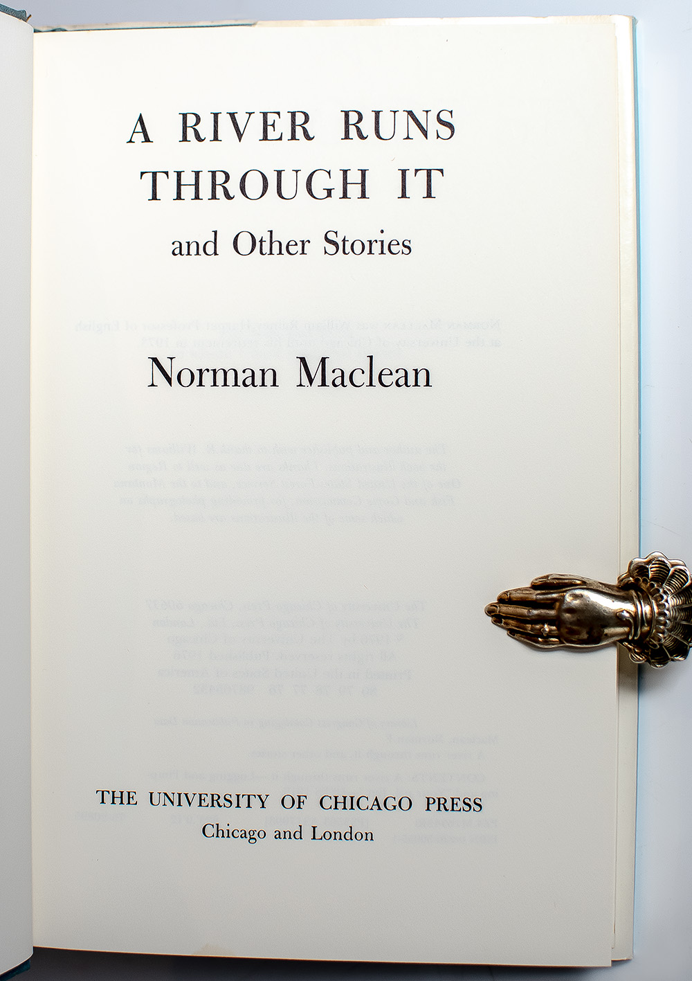 First edition, second printing of Maclean's first book. Octavo, original cloth. Presentation copy, lengthily inscribed by the author on the front free endpaper, "Feb. 2, 1977 (A birthday on Groundhogs Day) University of Chicago to John H. Shankes Happy Groundhog's Day Norman Maclean." Near fine in a very good price-clipped dust jacket with light toning to the spine. Jacket photograph by Joel Snyder.