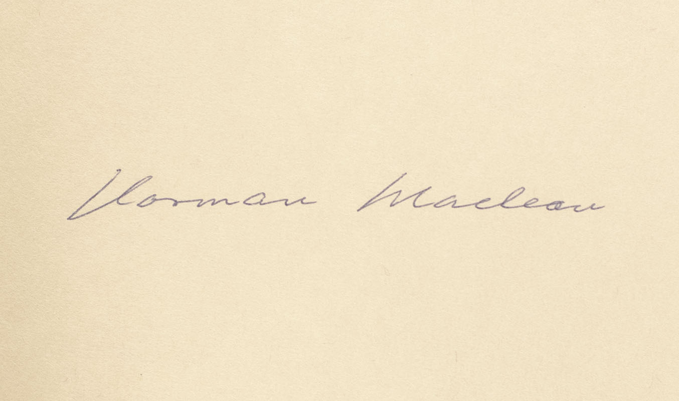 First edition, first printing one of only 1,577 copies of Maclean's first book. Octavo, original cloth. Signed by Norman Maclean on the front free endpaper. Near fine in a near fine price-clipped dust jacket. Jacket photograph by Joel Snyder.
