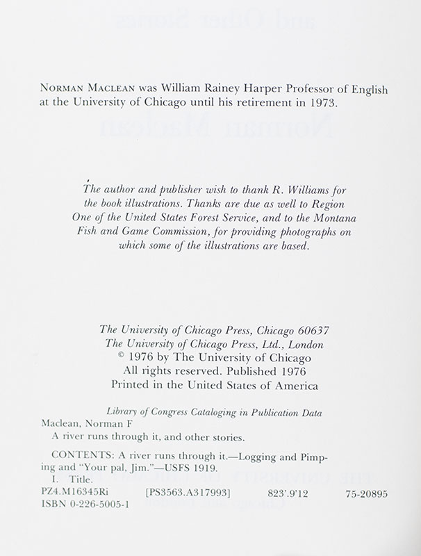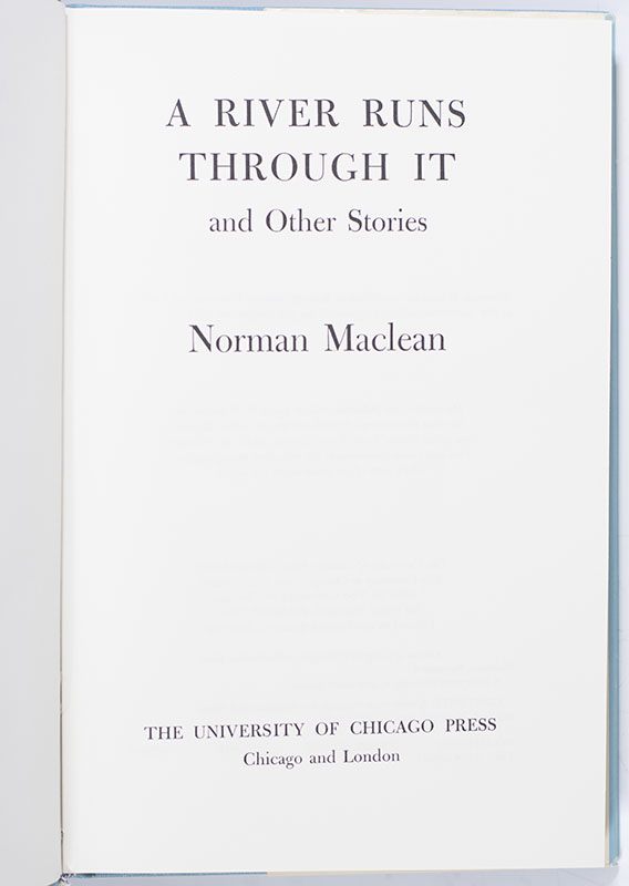 "All good things-trout as well as eternal salvation-come by grace and grace comes by art and art does not come easy": First Edition of A River Runs Through It; Signed by Norman Maclean