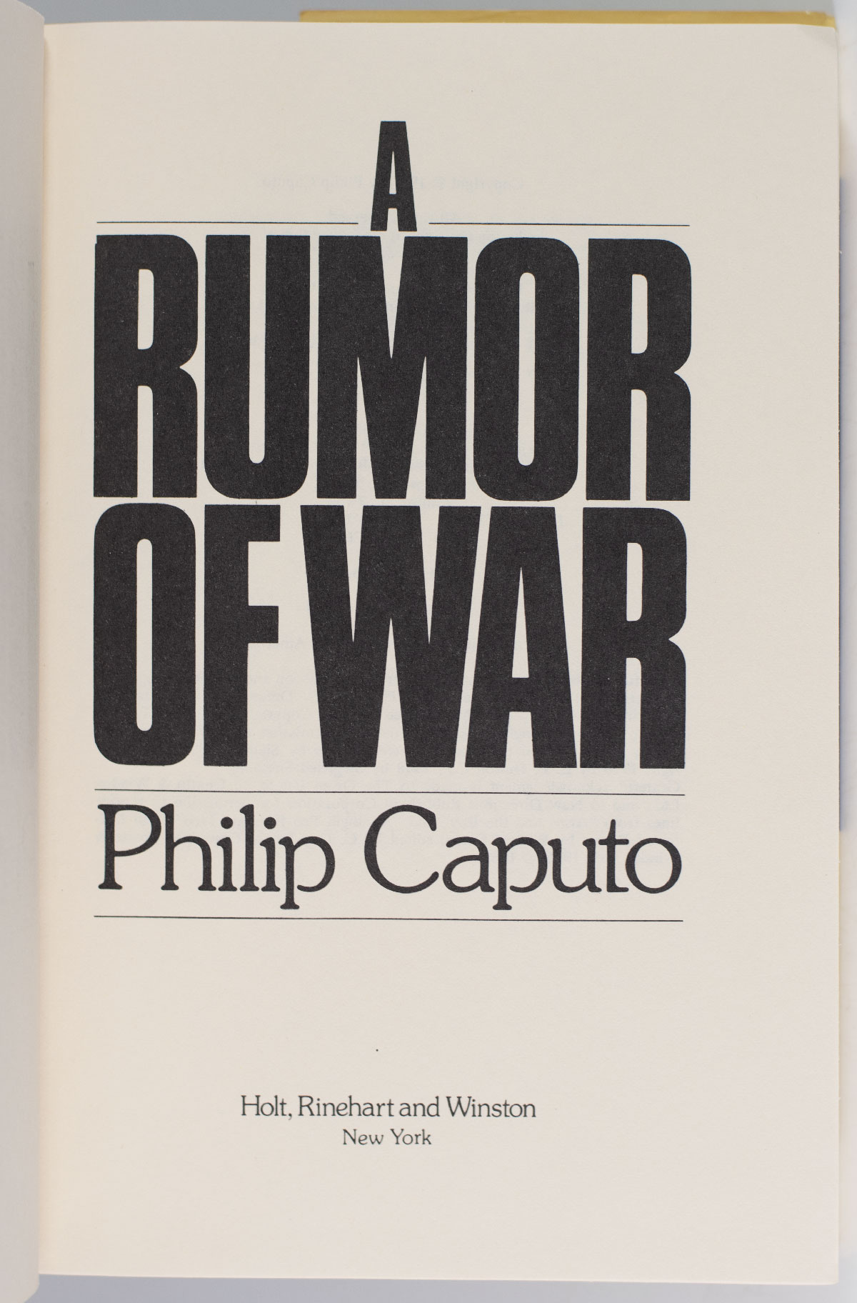 "We had survived, and that was our only victory": First Edition of Philip Caputo's A Rumor of War; Lengthily Signed by Him
