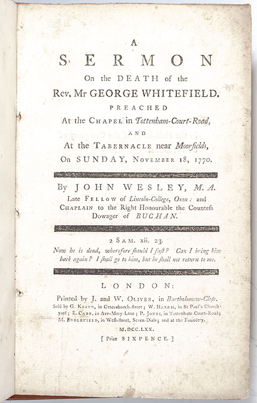 "Let my last end be like his!" First Edition of John Wesley's Sermon on the Death of the Rev. Mr. George Whitefield