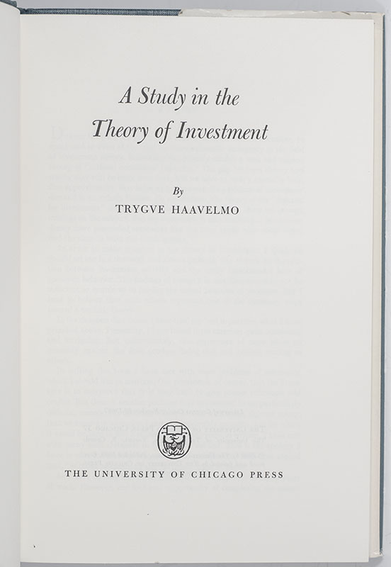 First Edition of Trygve Haavelmo's A Study in the Theory of Investment