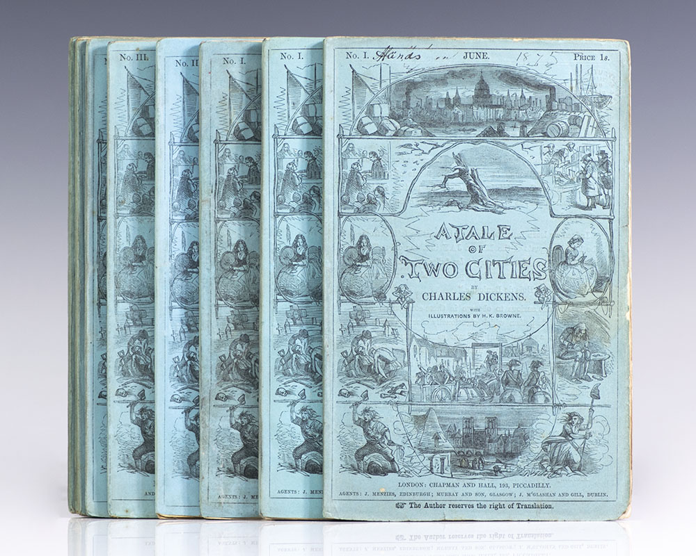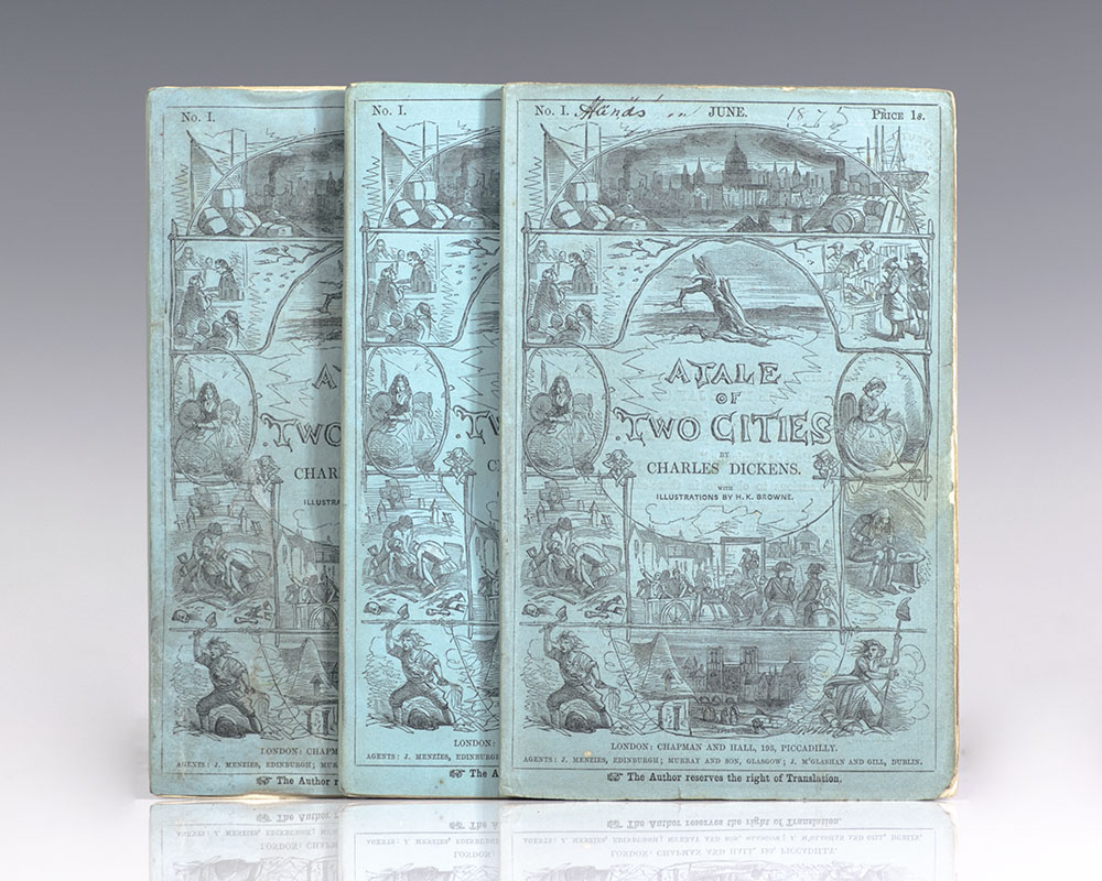Scarce complete First edition, first issue of Charles Dickens' A Tale of Two Cities; in the original monthly parts; with three variant issues of part 1