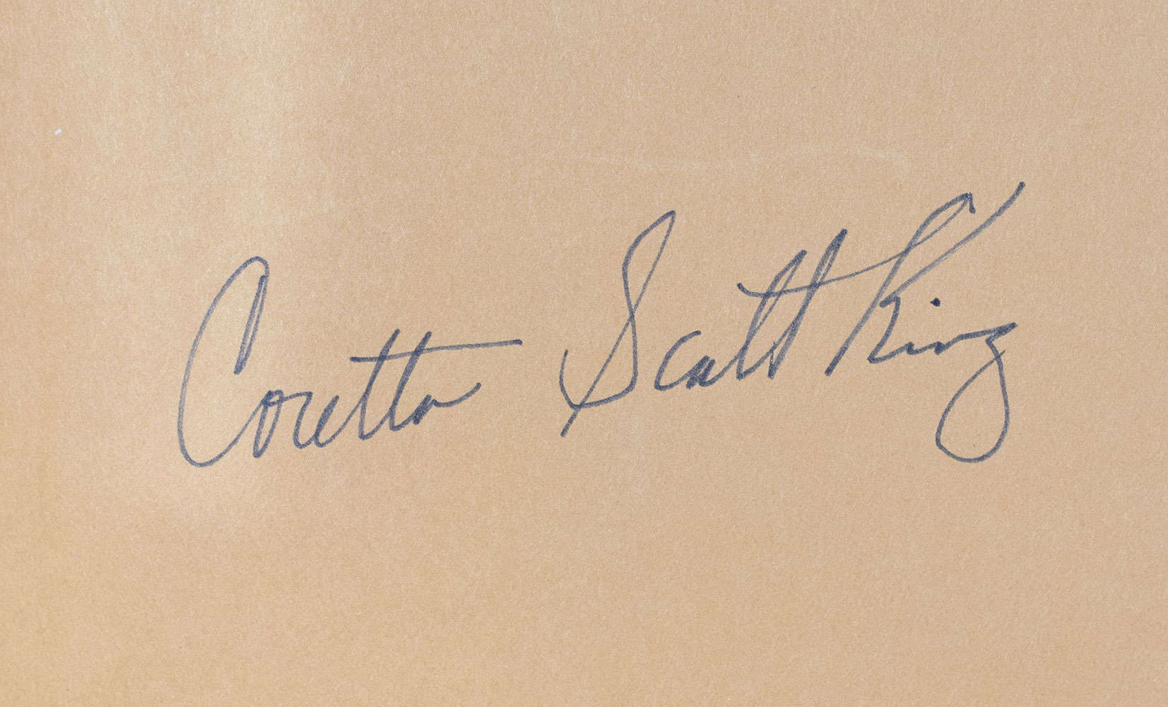 First edition of this classic collection of writings by Dr. King. Octavo, original cloth. Boldly signed by Coretta Scott King on the front free endpaper. Fine in a fine dust jacket. Jacket design by One Plus One Studio. Painting by Daniel Maffia. Edited by James M. Washington.